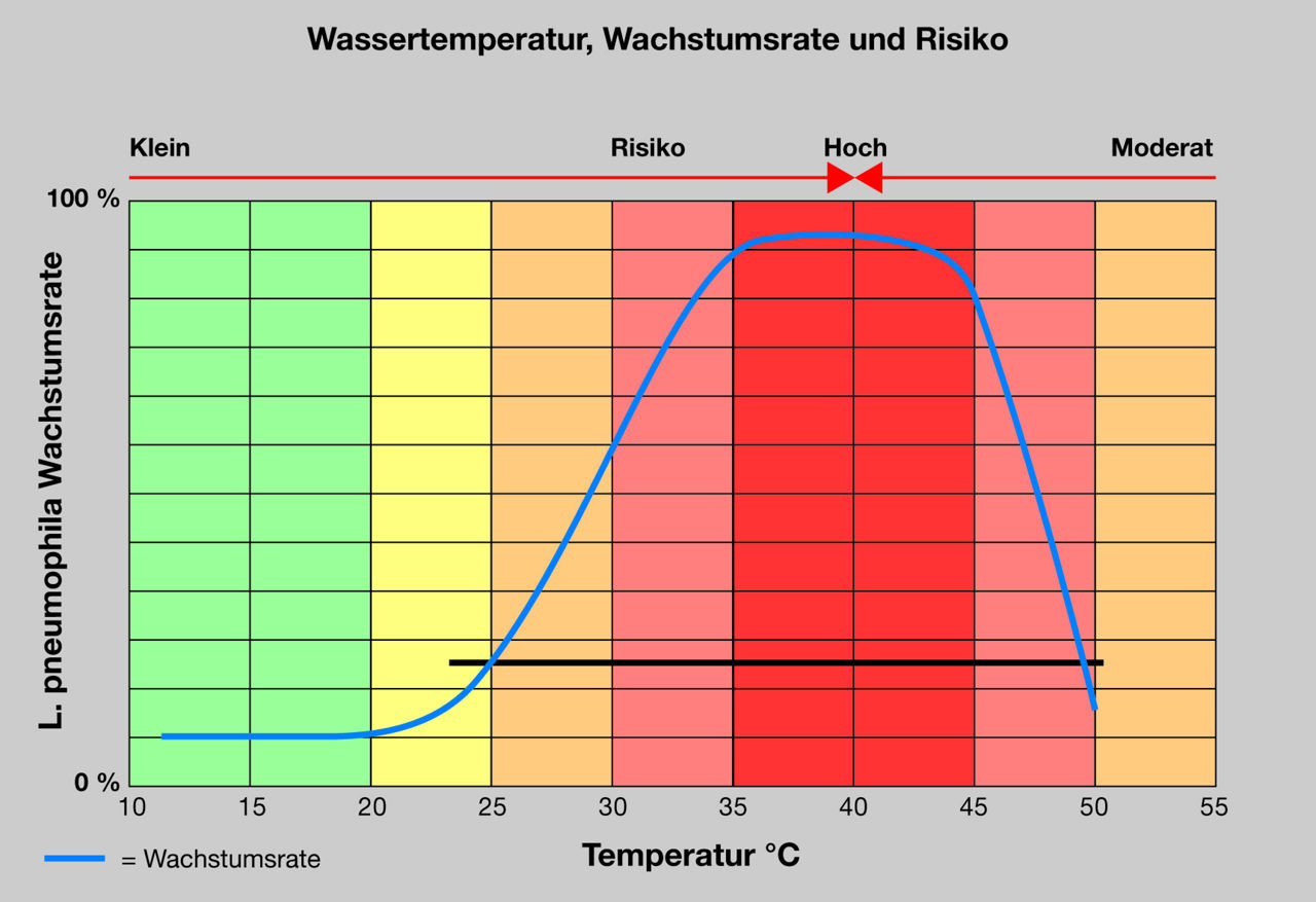 Legionellen vermehren sich im Kaltwasser massiv, wenn die Temperaturen über 25 °C liegen.