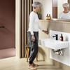 Ähnliches gilt für die Höhenverstellung des WCs. Schon beim standardmäßigen Prevista-WC-Element 8521 ist bei der Rohbau-Installation die Höhe der Befestigungsbolzen zwischen 33 und 39 cm variabel. Noch mehr Komfort bietet das Prevista-WC-Element 8521.32. Hier kann der Nutzer die Sitzhöhe auf Knopfdruck um 8 cm verstellen.
