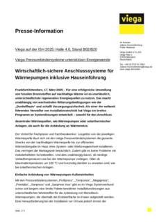 Weitere Informationen zu den Viega Pressverbindersystemen und Anschlussvarianten für regenerative Wärmeerzeuger unter viega.de/waermepumpen-anschluss