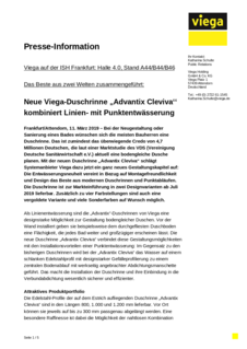 Weitere Informationen zur ab Juli 2019 lieferbaren Duschrinne „Advantix Cleviva“ gibt es im Internet unter viega.de/Cleviva.