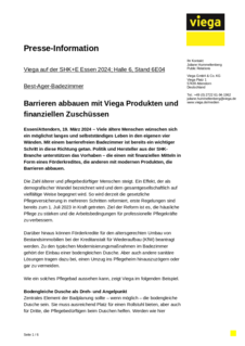 Darüber hinaus können Förderkredite für den altersgerechten Umbau von Bestandsimmobilien bei der Kreditanstalt für Wiederaufbau (KfW) beantragt werden. Zu den typischen Modernisierungsmaßnahmen im Badezimmer gehört der Einbau einer bodengleichen Dusche. Aber auch andere sanitäre Lösungen tragen dazu bei, einen Umzug ins Pflegeheim hinauszuzögern oder gar zu vermeiden. Wie ein solches Pflegebad aussehen kann, zeigt Viega im folgenden Beispiel.