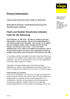 Viega bietet schon lange Ablauflösungen mit besonders geringen Aufbauhöhen an. Mit dem Sanierungsmodell der Duschrinne Advantix Vario hat der Hersteller jetzt sein Angebot für alle Renovierer und Sanierer erweitert.