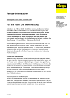 Energetisch und auch wirtschaftlich sinnvoll ist die Kombination der Wandheizung mit einer Fußbodenheizung. Denn durch die geringeren Vorlauftemperaturen die eine Flächenheizung benötigt (35 Grad Celsius im Vergleich zu 70 Grad Celsius bei einer klassischen Heizungsanlage) und die niedrigere, aber dennoch als angenehm empfundene Raumtemperatur kann deutlich Energie und damit bares Geld eingespart werden. Eine schnelle und ebenfalls trockene Ausbaulösung für den Boden ist Fonterra Reno von Viega.
