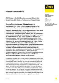 Mehr Informationen zu „TGA.Digital – Der BIM-Fachkongress zur Zukunft des Bauens“ unter viega.de/ViegaWorld