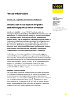 Allgemeine Informationen zum Thema „Erhalt der Trinkwassergüte“ gibt es unter www.viega.de/trinkwasser.