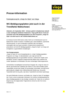 Schwarz gehört im Badezimmer aktuell zu den wichtigsten farblichen Statements. Viega greift diesen Trend auf und bietet seine WC-Betätigungsplatten aus dem Programm „Visign for Style“ ab sofort auch in der Variante Mattschwarz an.