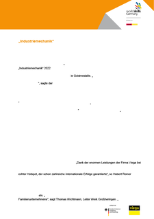 Das Viega-Werk in Großheringen bot optimale Bedingungen für die talentierten Nachwuchskräfte, gleich zu Beginn ihrer beruflichen Laufbahn ihr innovatives Potenzial bei einer Deutschen Meisterschaft unter Beweis zu stellen und weiterzuentwickeln. Von hier konnte das Unternehmen mit Hauptsitz in Attendorn (Nordrhein-Westfalen) bereits mehrfach eigene Mitarbeitende zur WM der Berufe entsenden. „Dank der enormen Leistungen der Firma Viega bei der beruflichen Qualifizierung von Fachkräften darf WorldSkills Germany die Region Großheringen als zentrale Talentschmiede für die Weltmeisterschaft der Berufe bezeichnen. Ein echter Hotspot, der schon zahlreiche internationale Erfolge garantierte“, so Hubert Romer Offizieller Delegierter von WorldSkills Germany.